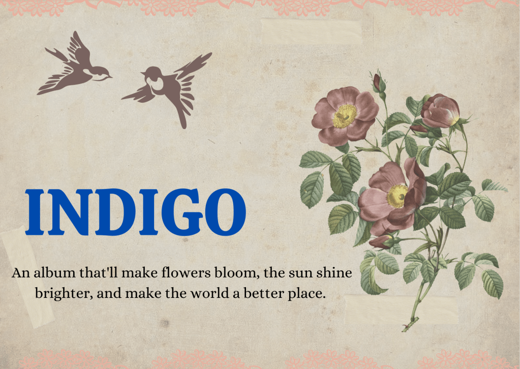Congratulations for Indigo Namjoon. I’m so excited and happy for you. You’ve made this album with so much effort and hardwork. You’ve spent late nights in the studio with a cup of coffee to keep you up and tons of dedication and sincerity to write those heartfelt songs. It wasn’t easy, but you’ve come so far. I’m so excited and blessed to be a part of this beautiful journey. I’m so happy to exist at the same time as you joon. I love you and I’m so proud of you. Goodluck for Indigo. One last thing. There might be 32 colours in a set of colour box, 7 colours in the rainbow, and more than 100 colours that we see in our daily lives. But my favourite will always be Indigo, because Indigo means Kim Namjoon.